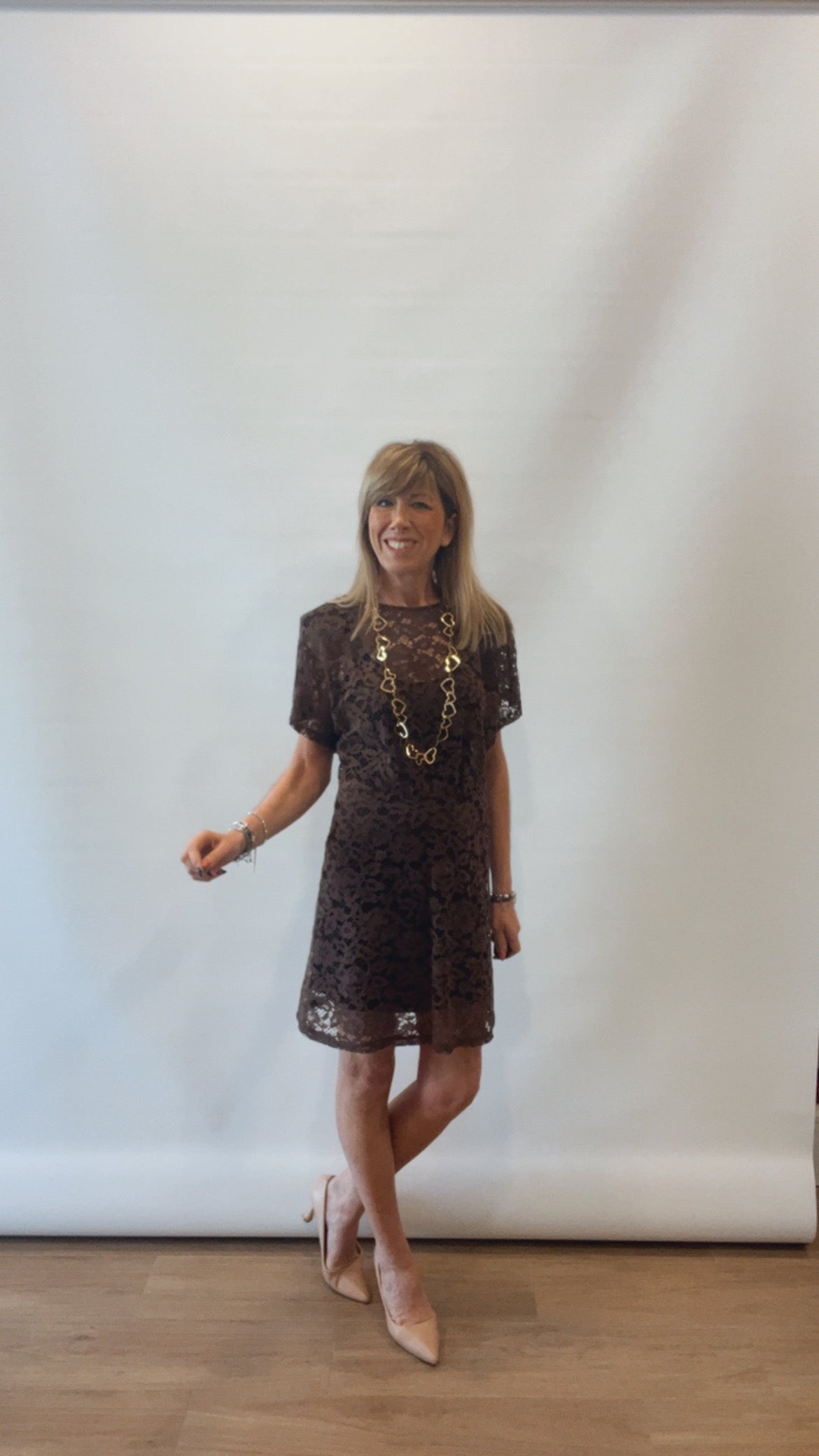L’abito è in taglia Xs e S (la modella indossa tg S ed alta 1,67cm) e la taglia S veste bene anche la taglia M