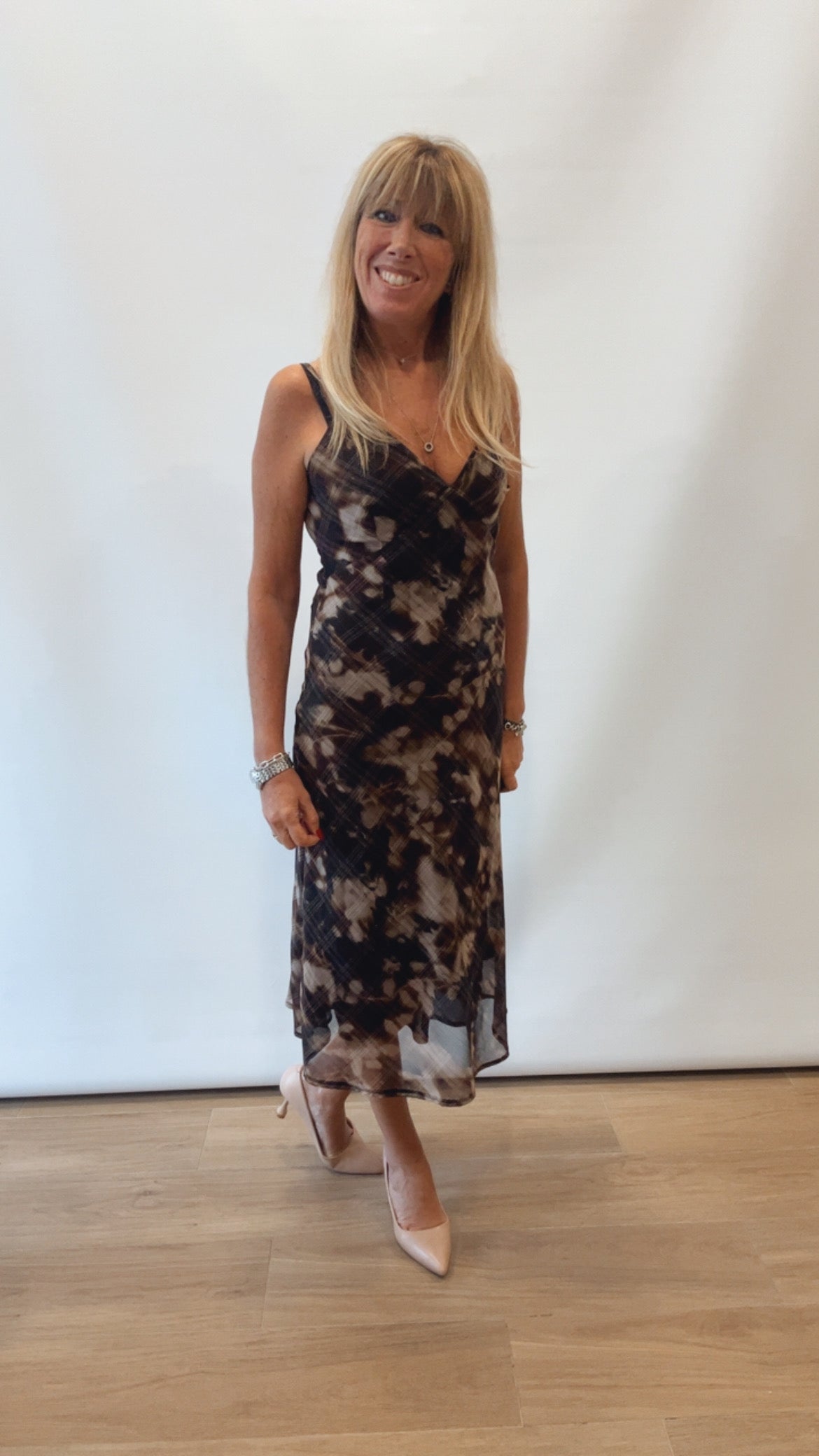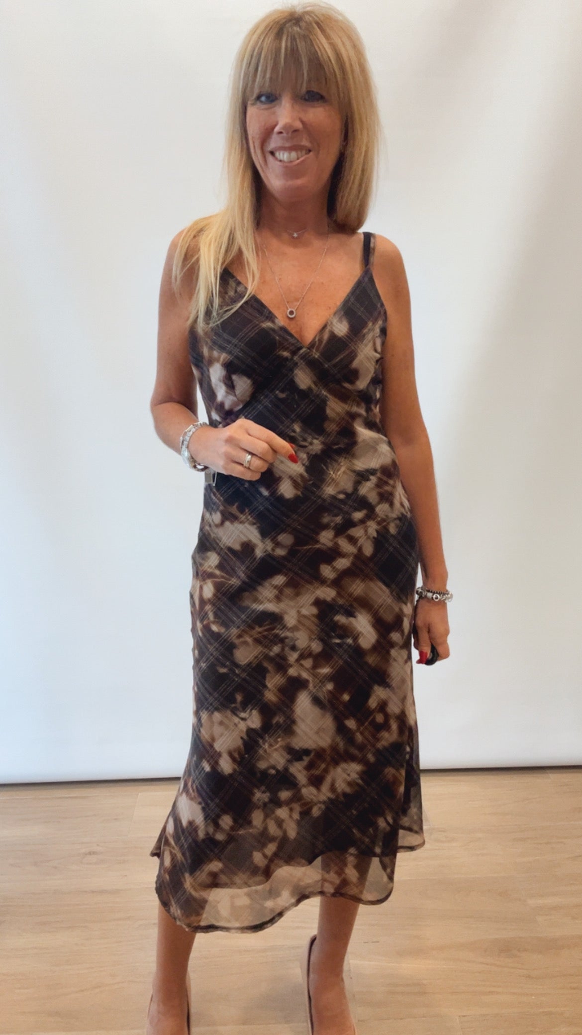 Abito con bretelline regolabili, composto la parte sopra a fantasia e sotto con la fodera . Consigliato anche per un evento.