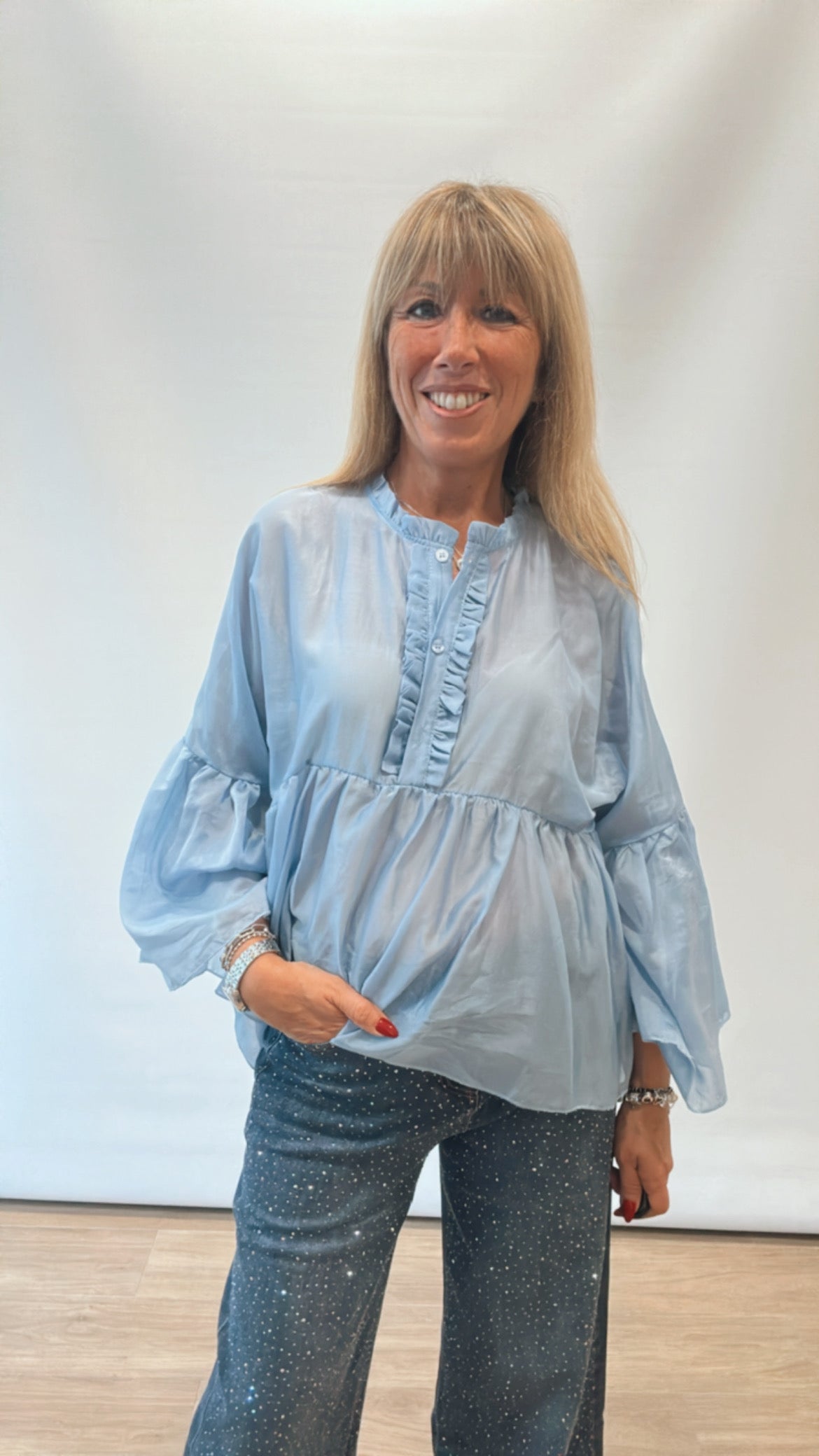 Blusa con bottoni con frappettina, rimane leggermente larga , manica con rouge