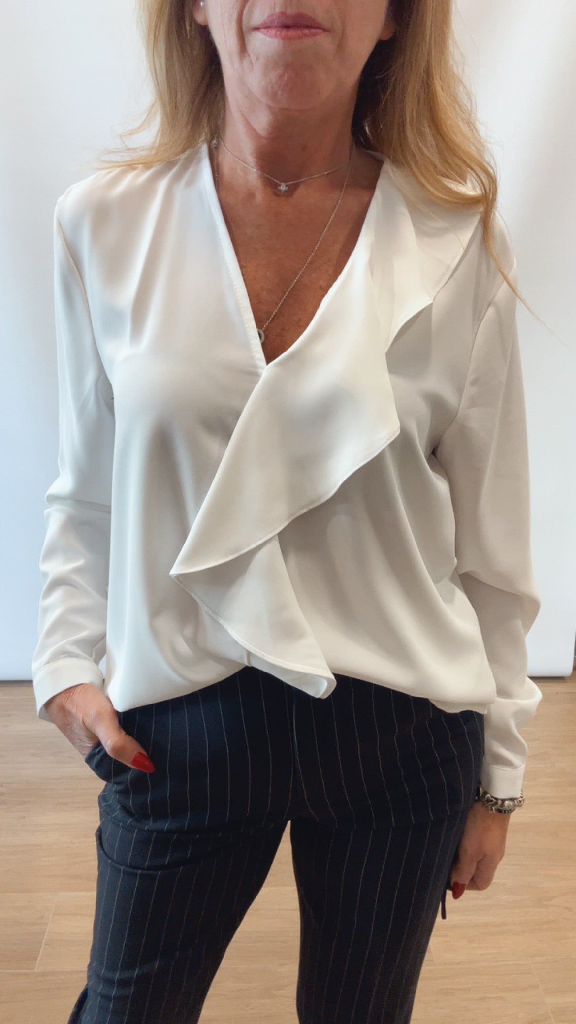 Blusa con volant con piccolo spacco sul davanti