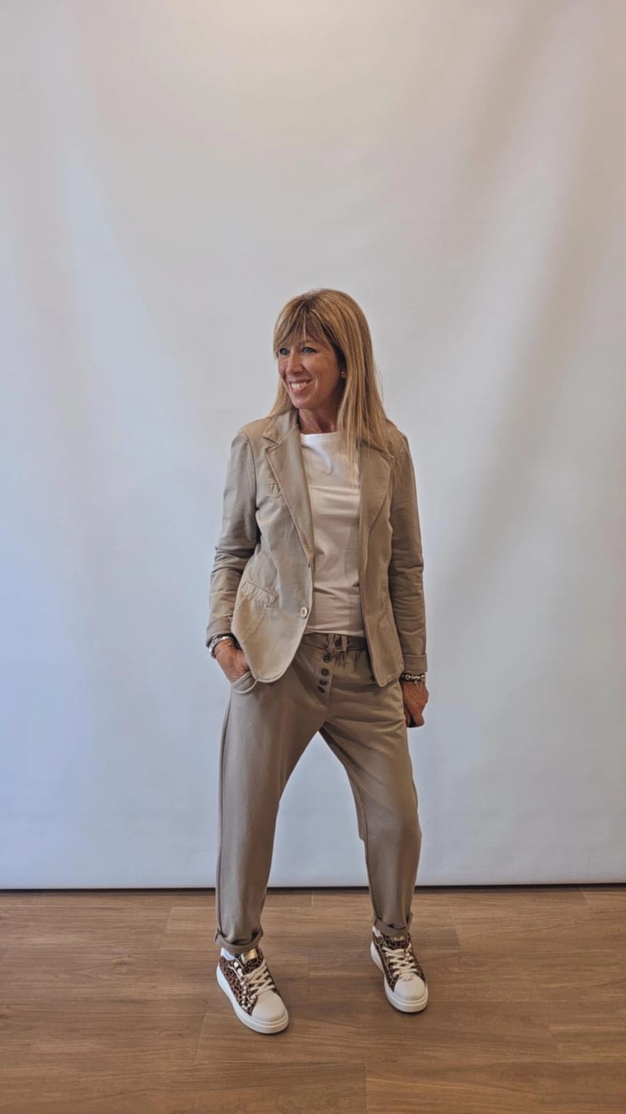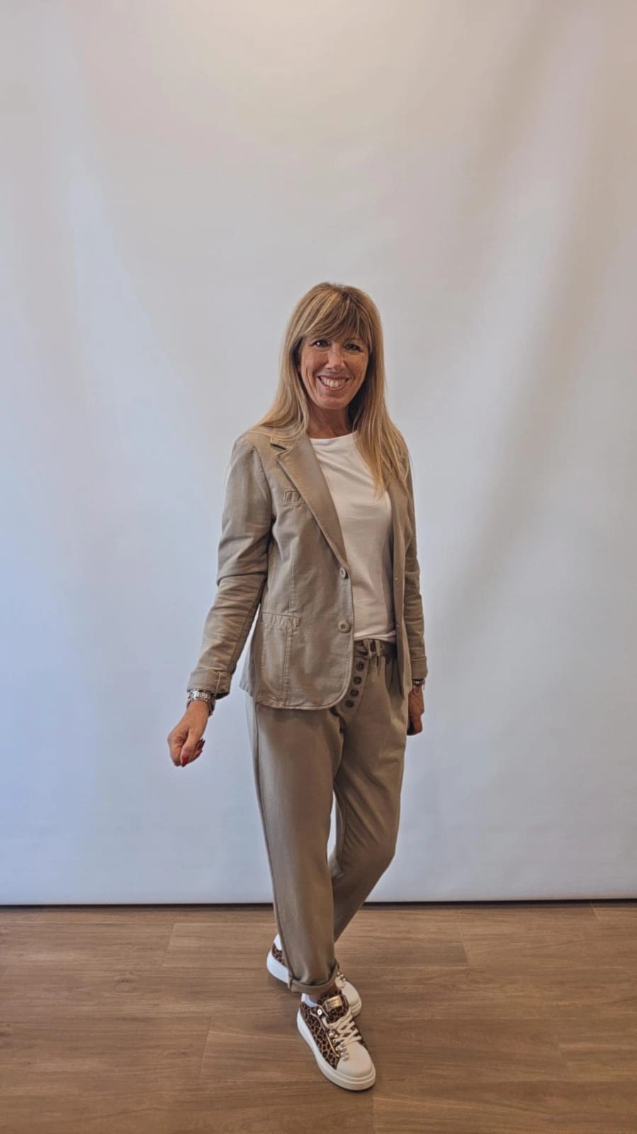Giacca sfiancata con due bottoni, toppa sui gomiti, in felpa