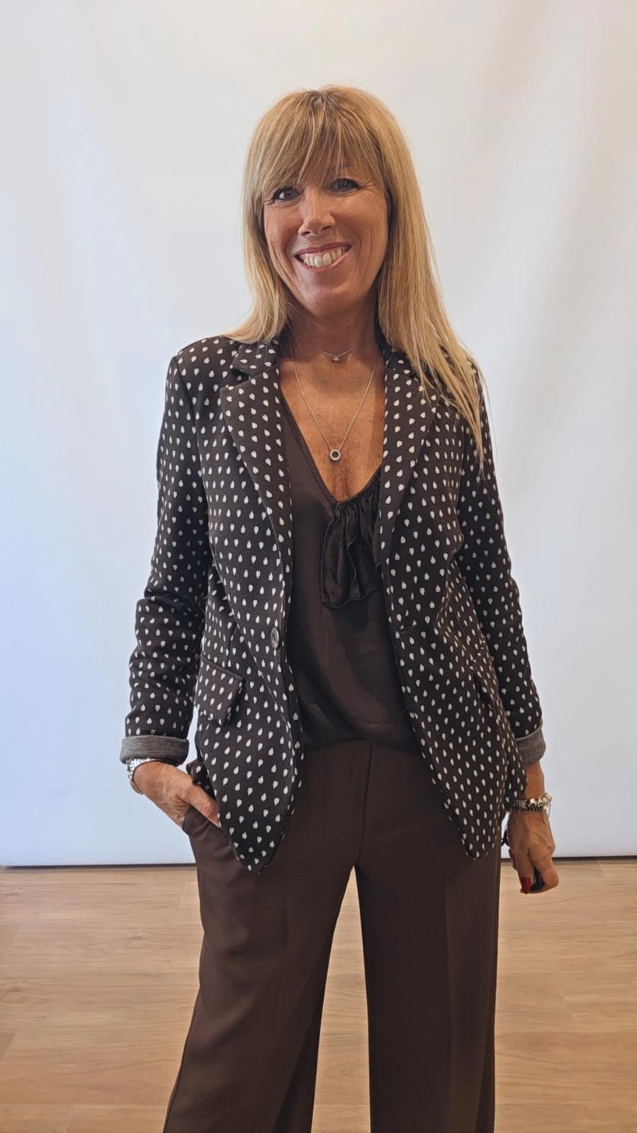 Giacca sfiancata , tasche finte, decorazioni cuoricini,