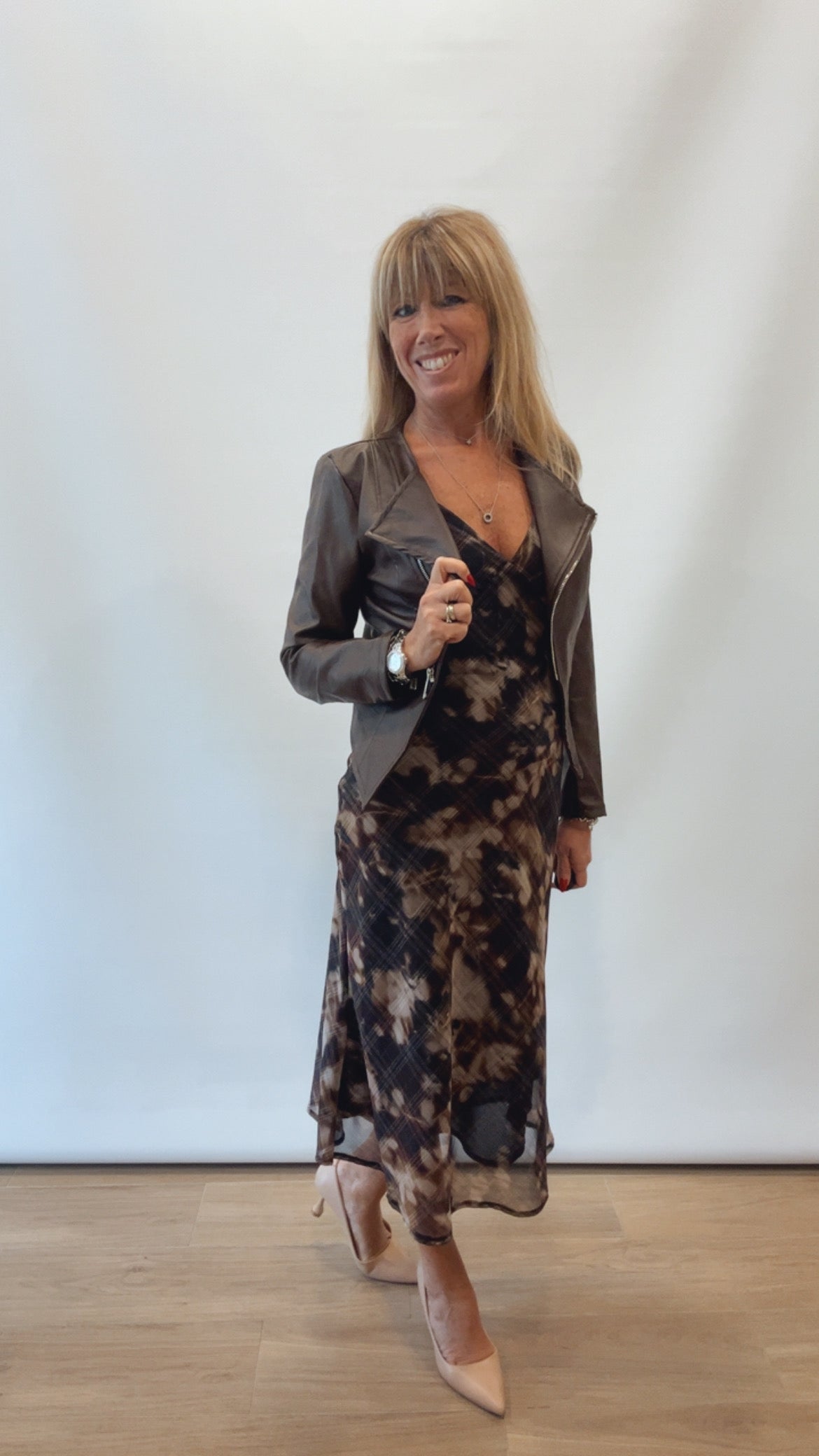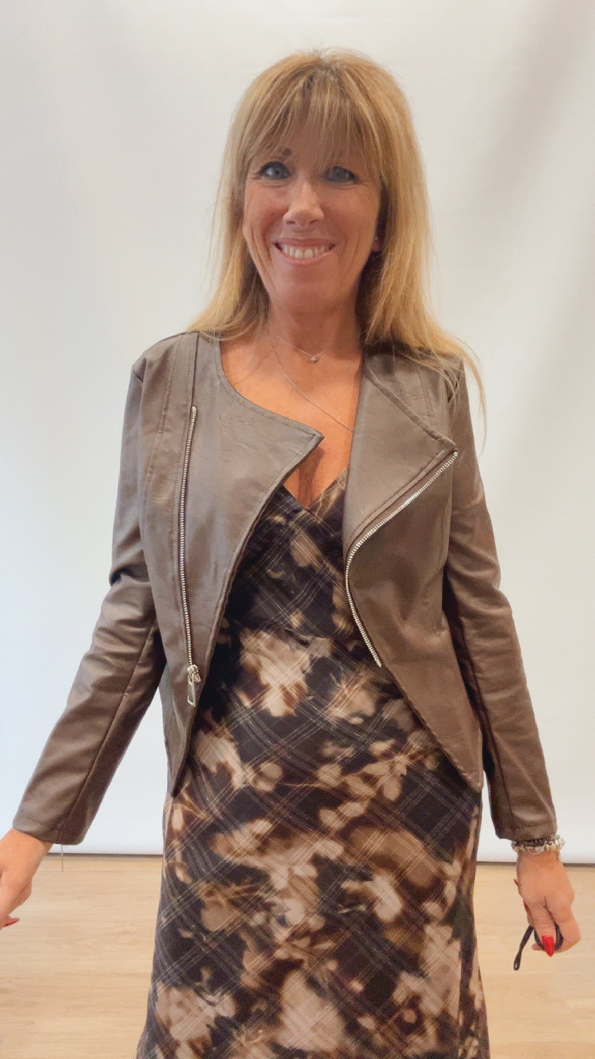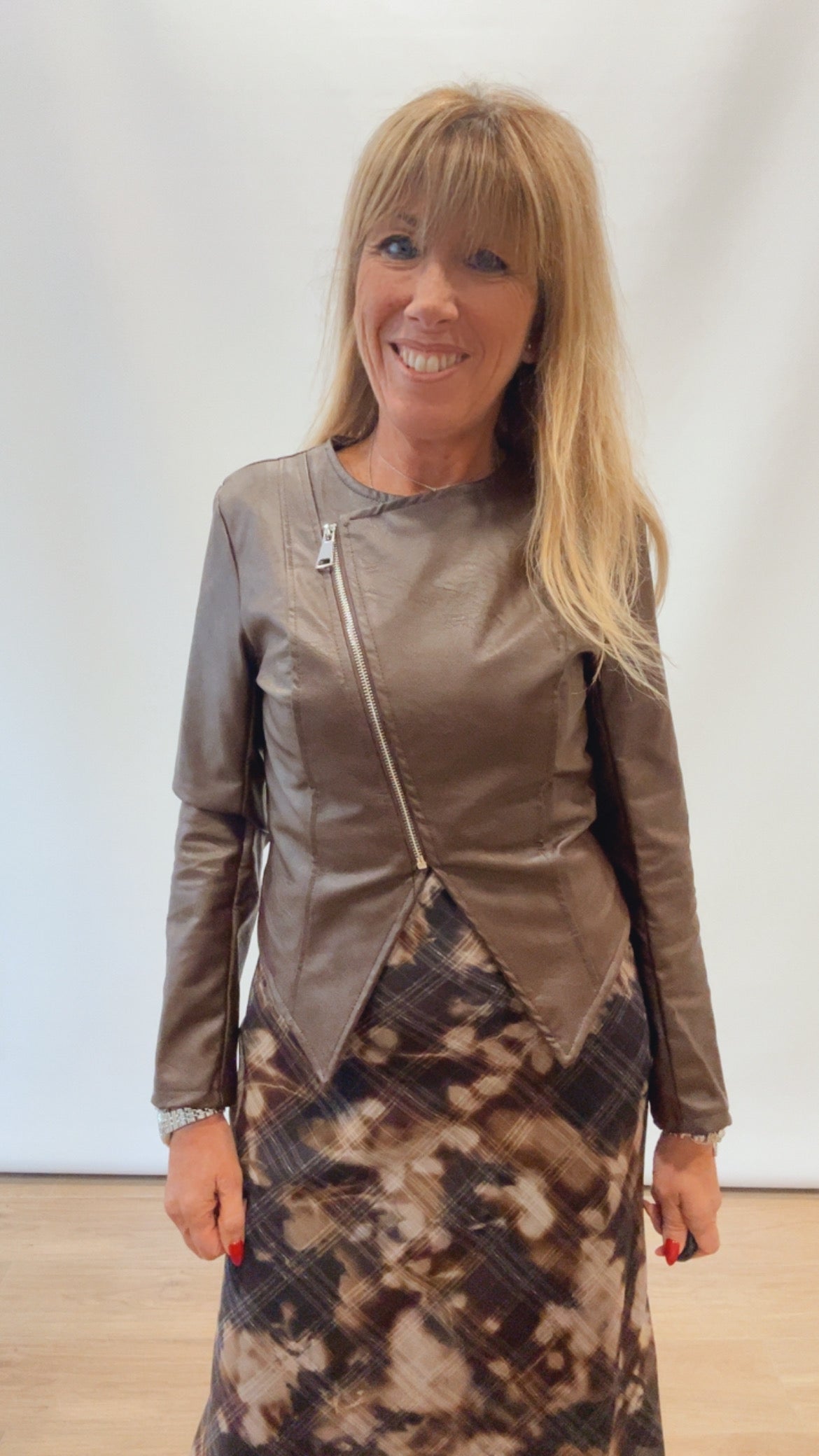 Giubbino in eco pelle con cerniera , doppio petto notare il particolare delle punte per renderlo più fashion da indossare con un abito elegante da un tocco di eleganza in più !