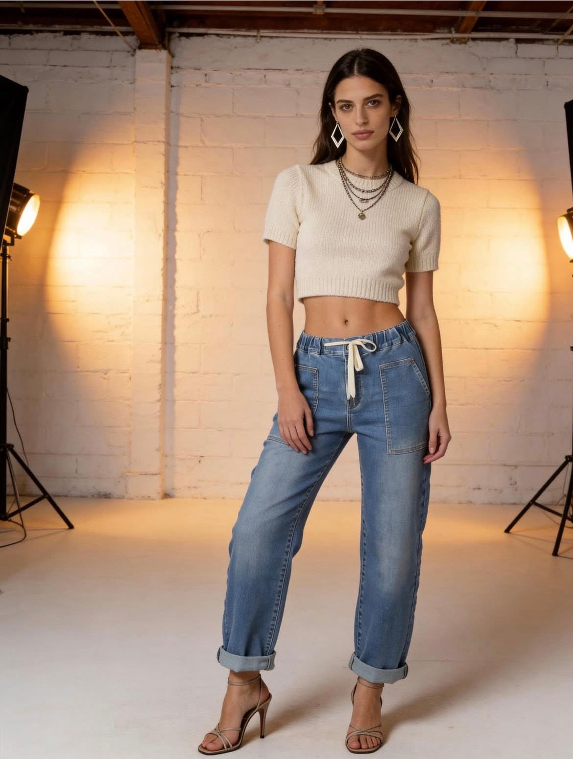 Jeans con elastico in vita regolabile , elasticizzato ,