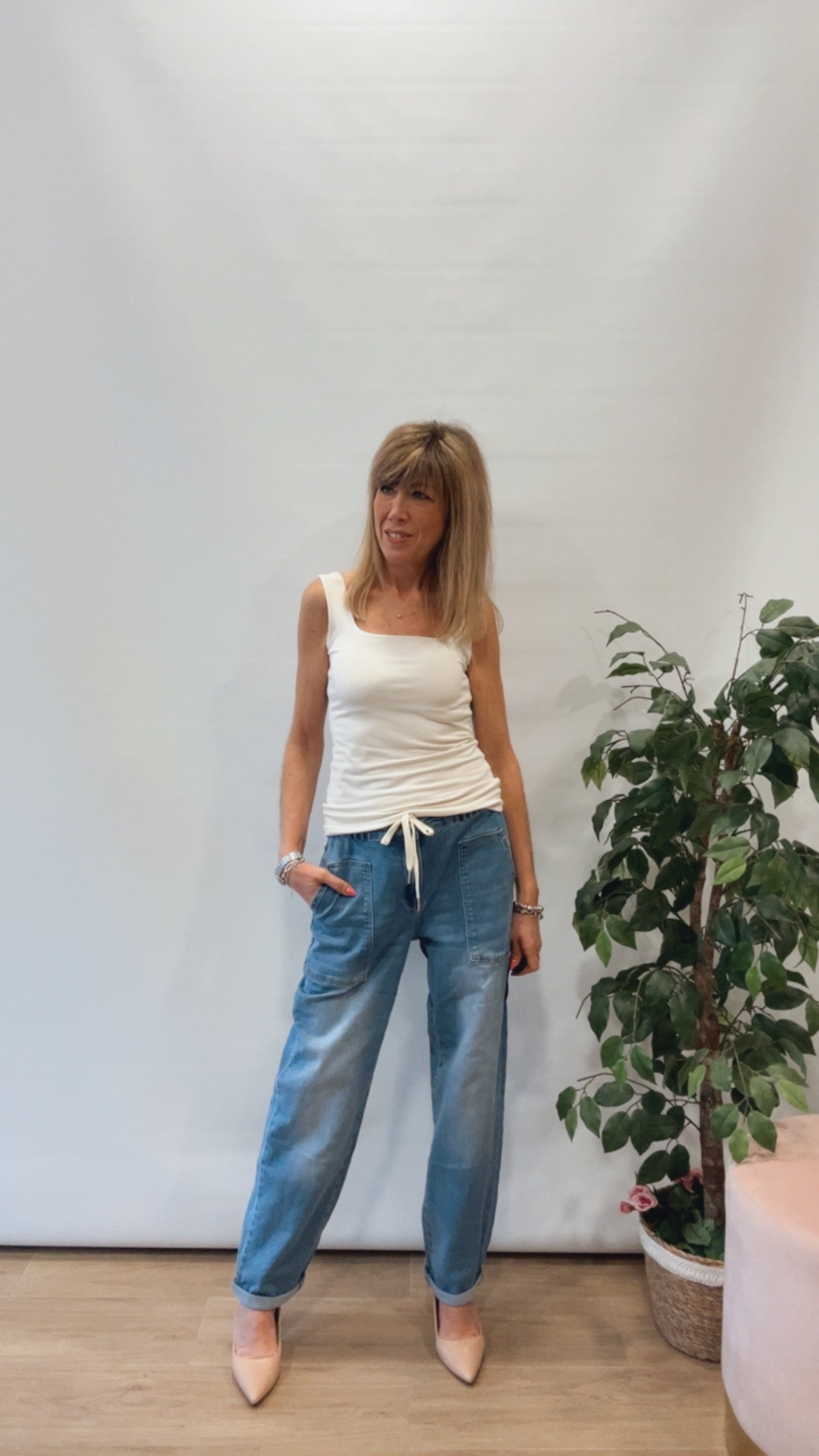 Taglie dalla 40 alla 46/48 ottima vestibilità grazie all’elastico in vita (la modella veste tg 40 ed è alta 1,67cm)