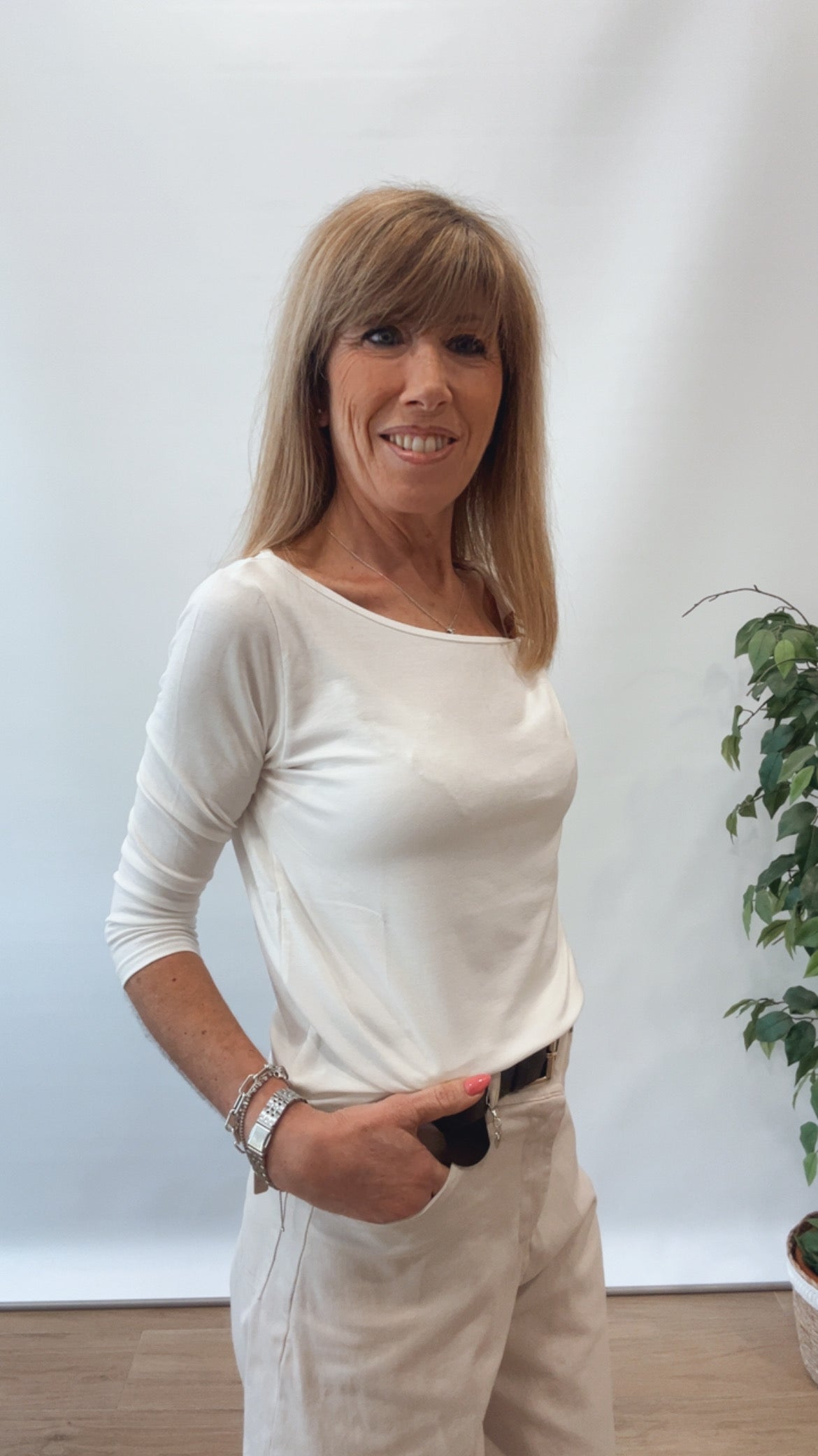 Maglia manica a 3/4 , cut out e accessorio sulla spalla