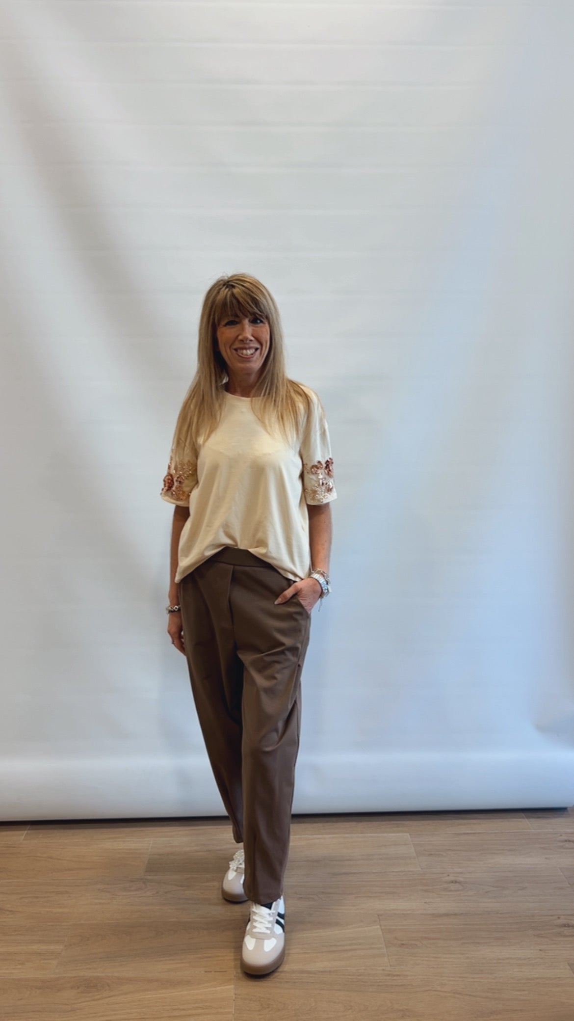 T-shirt con applicazione di paillettes e perline nella mezza manica