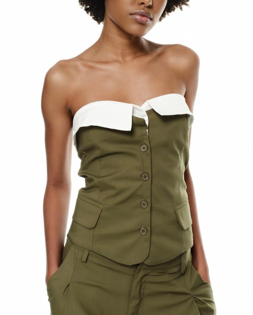 Top a fascia con risvolto con allacciatura sul davanti con bottoni in 4 varianti colori